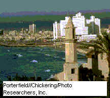 - País estreito no leste do litoral mediterâneo, apresenta paisagens variadas: uma planície costeira limitada por colinas, ao sul, e o planalto de Galiléia, ao norte; uma grande depressão que margeia o rio Jordão até o mar Morto, e o Negev, uma região desértica ao sul que se estende até o Golfo de Ácaba.